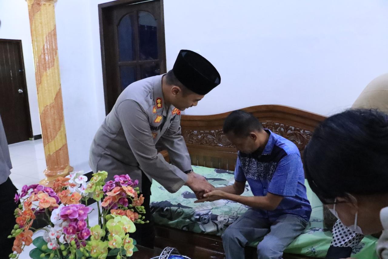 Kapolres menyerahkan tali asih serta memberikan motivasi agar yang bersangkutan tetap semangat dan optimis menjalani proses pemulihan. Tim Dokkes turut melakukan pemeriksaan kesehatan berupa pengecekan tekanan darah.